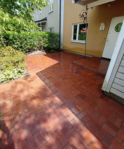 Moderna fogmetoder: Genom att använda egna hårdfog och polymerbaserade material skapar vi en barriär som är ogenomtränglig för ogräs och myror. Din entré förblir ren och representativ utan kemikalier eller manuell rensning.